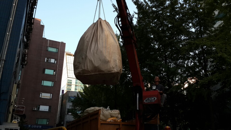![]() 해체후 석면폐기물을 지정차량으로 운반하는 모습입니다 |