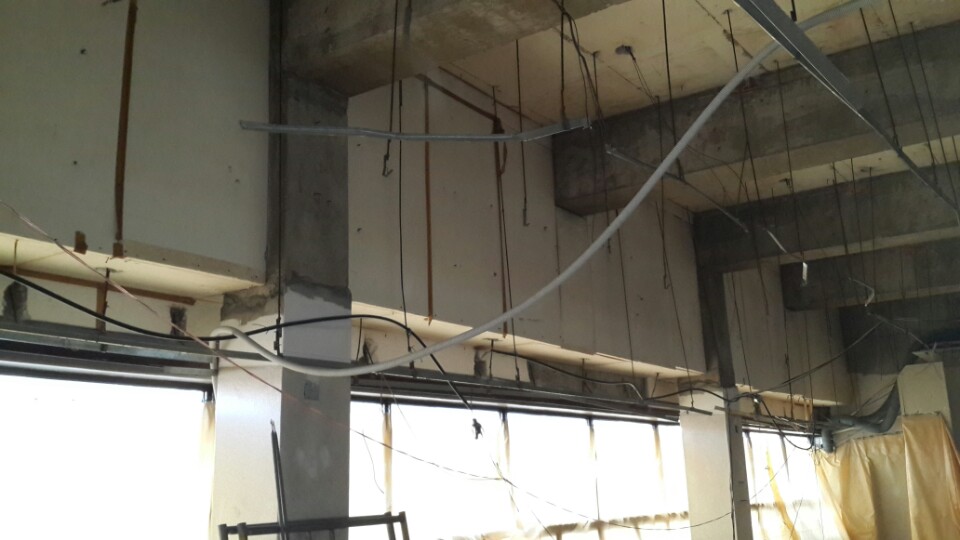 ![]() 천정 석면 텍스 해체 후의 현장사진(강당 측면-창문)입니다. |