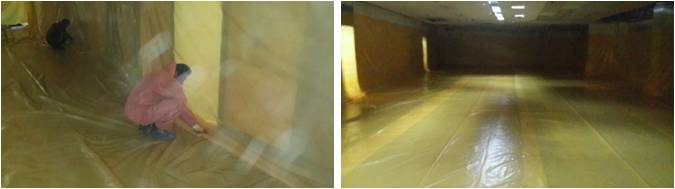 ![]() 오성프라자 지하1층 석면해체 작업전 석면비산방지를 위한 비닐보양사진입니다. |