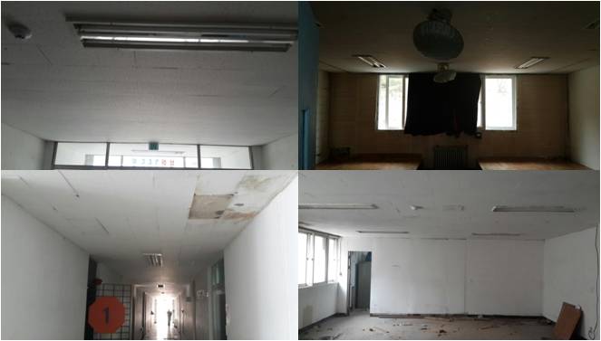 석면 해체 전의 병영생활관 현장 사진들입니다.