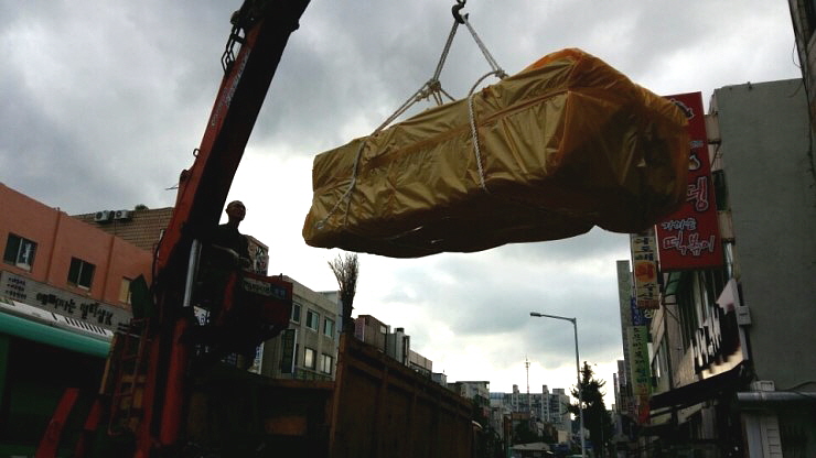 폐기물 운반 석면폐기물을 지정차량으로 운반하고 있습니다. 석면폐기물은 반드시 지정운반차량으로 운반하여야 합니다. |