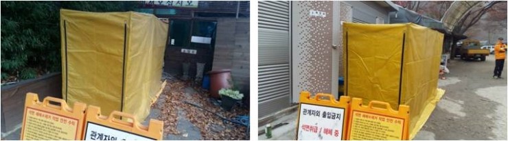 작업전 준비 사진 바닥 비닐 보양 (석면 비산 방지)? 위생시설 철치? ? |