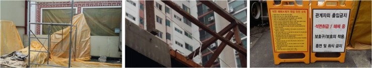 작업자의 안전과 위험예방을 위해 각종 안전시설을 설치했습니다. 안전작업대 설치, 안전바 설치, 출입통제표지판 설치? |