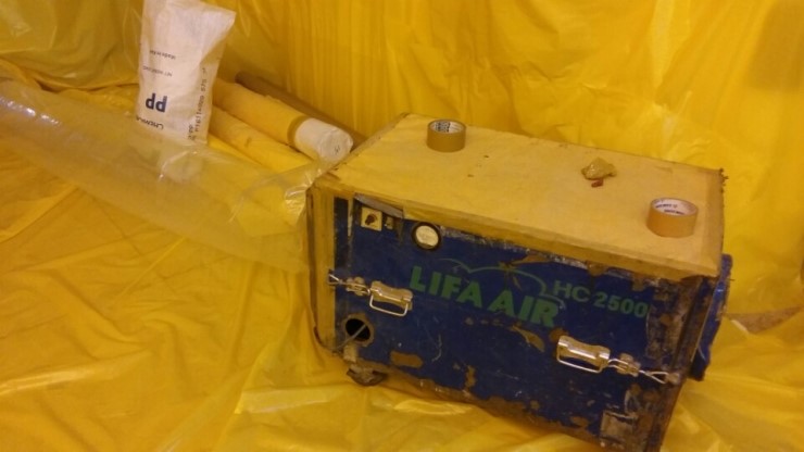 음압기는 내부작업시 음압을 유지하여 석면이 외부로 비산되지 않도록 해 줍니다. |