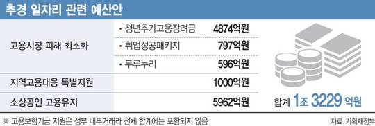[코로나19추경]일자리 예산 1조3229억원 투입 국회가 막은 청년구직활동지원금, 추경예산에 편성 청년추가고용장려금 부족분 추경서 조달 코로나19 대응인데 일자리예산 '과도' 지적도[세종=이데일리 조해영 기자] 코로나19 극복을 내세운 올해 추가경정예산(추경)안 중 일자리 관련 예산은 1조원이 넘는다. 정부는 코로나19발 경기침체로 실직 위기에 처한 취약계층을 돕기 위해서라고 설명했지만 예산 투입 규모가 지나치게 크고 정작 효과는 미미할 것으로 예상돼 ‘가성비’ 떨어지는 정책이란 지적이다. 특히 작년 예산안 편성 당시 국회가 가로막은 사업도 슬그머니 끼워 넣어 추경으로 일자리 사업을 ‘땜질’했다는 비판도 나온다.