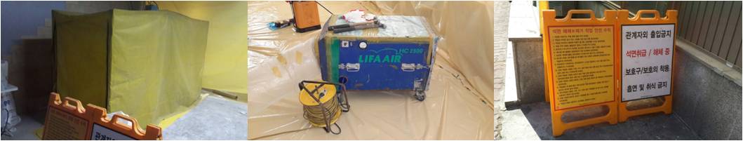 ![]() 오성프라자 석면해체/제거 작업을 위한 안전관리용 각종 설비들입니다. |