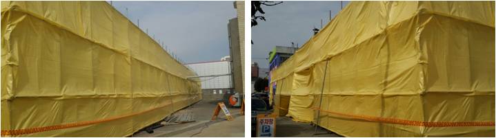 ![]() 한국기계전기전자시험연구원 작업을 위해 분진막을 설치한 모습입니다. |